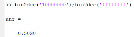 I got it. We are supposed to get half with bin2dec('10000000) {or 128 in dec} / bin2dec(‘100000000’) {or 256 in dec).