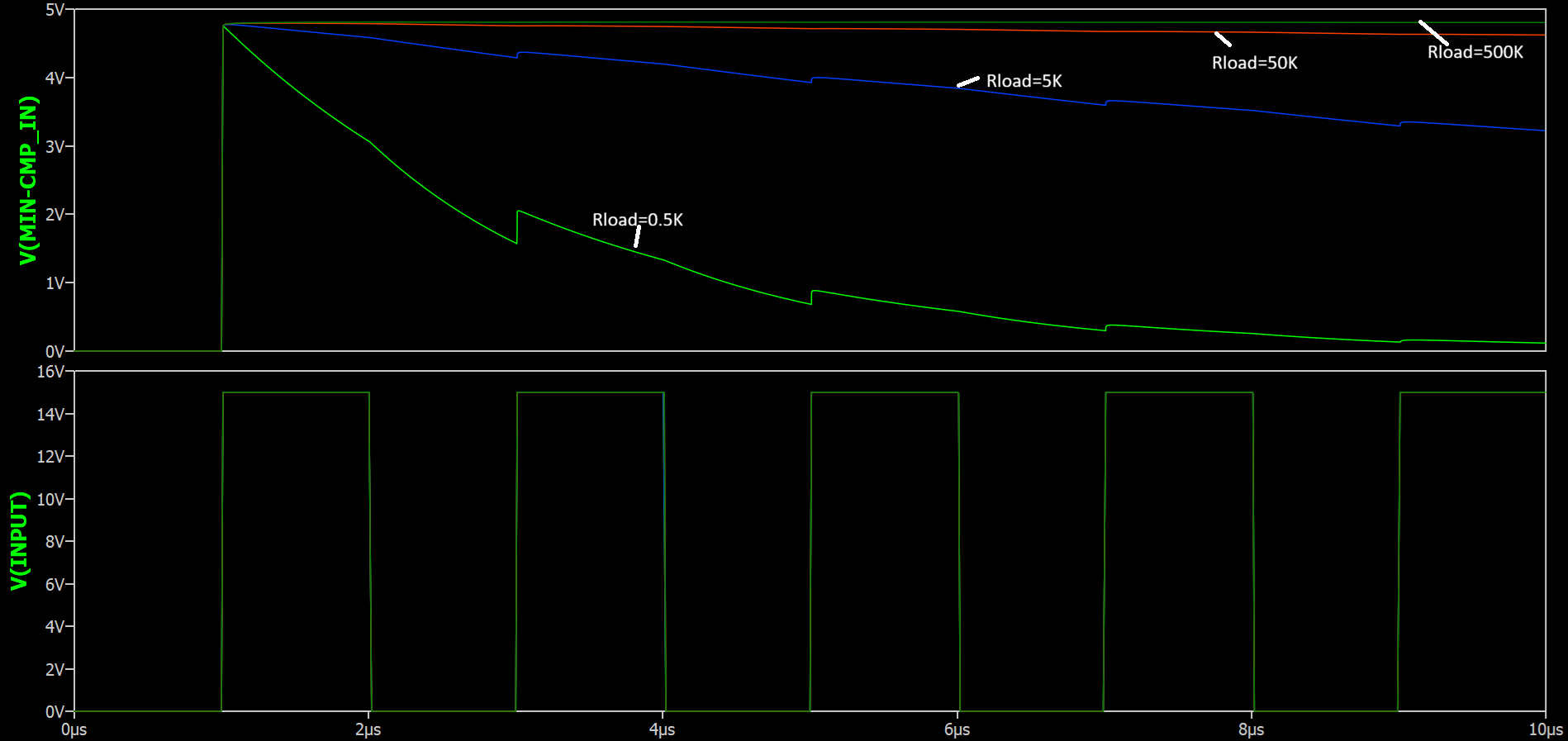You can see as a increase the resistor value, the load is less and the C2 cap retains more of its’ charge. As the resistor value lowers, the load is higher and the C2 cap discharges more. The main issue is that caps are usually terrible sources of current. Therefore the C1 cap can only source current when V1 is supplying voltage.