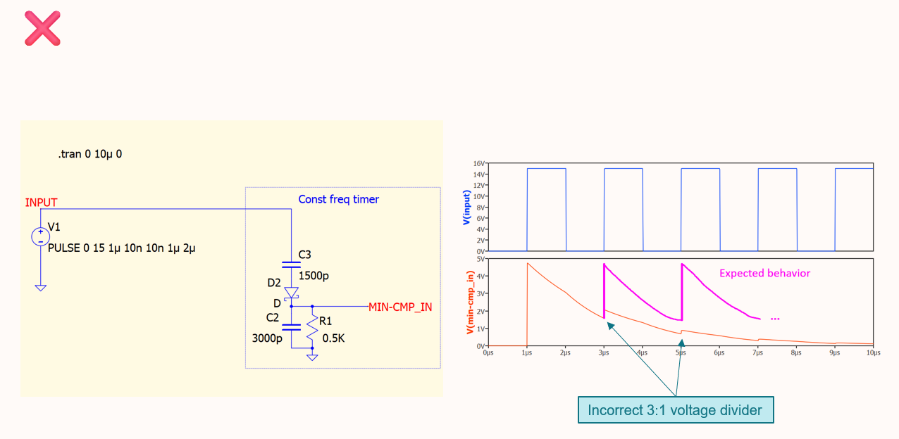 I don’t agree with your circuit analysis though. For the following example, let’s assume very short on-time for simplicity.