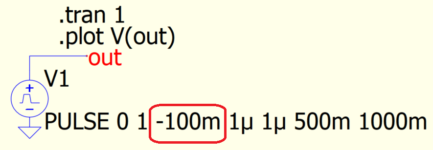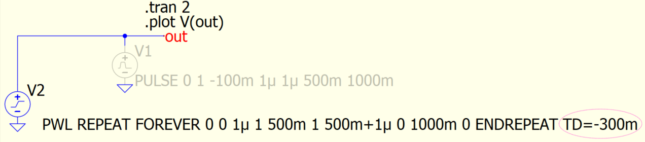 QSpice correctly implements a PULSE V-source with a negative TDELAY.
