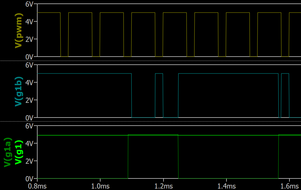 Now, if you interface my 0&1 custom logic to Qspice default with Vdd assigned to 5V and Vss assigned to 0V, you have to pay attention that the logic threshold in determine what is HIGH and LOW are mismatch. Default Logic threshold is (Vdd+Vss)/2.