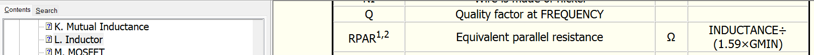 inductor rpar is now infinite at default.
