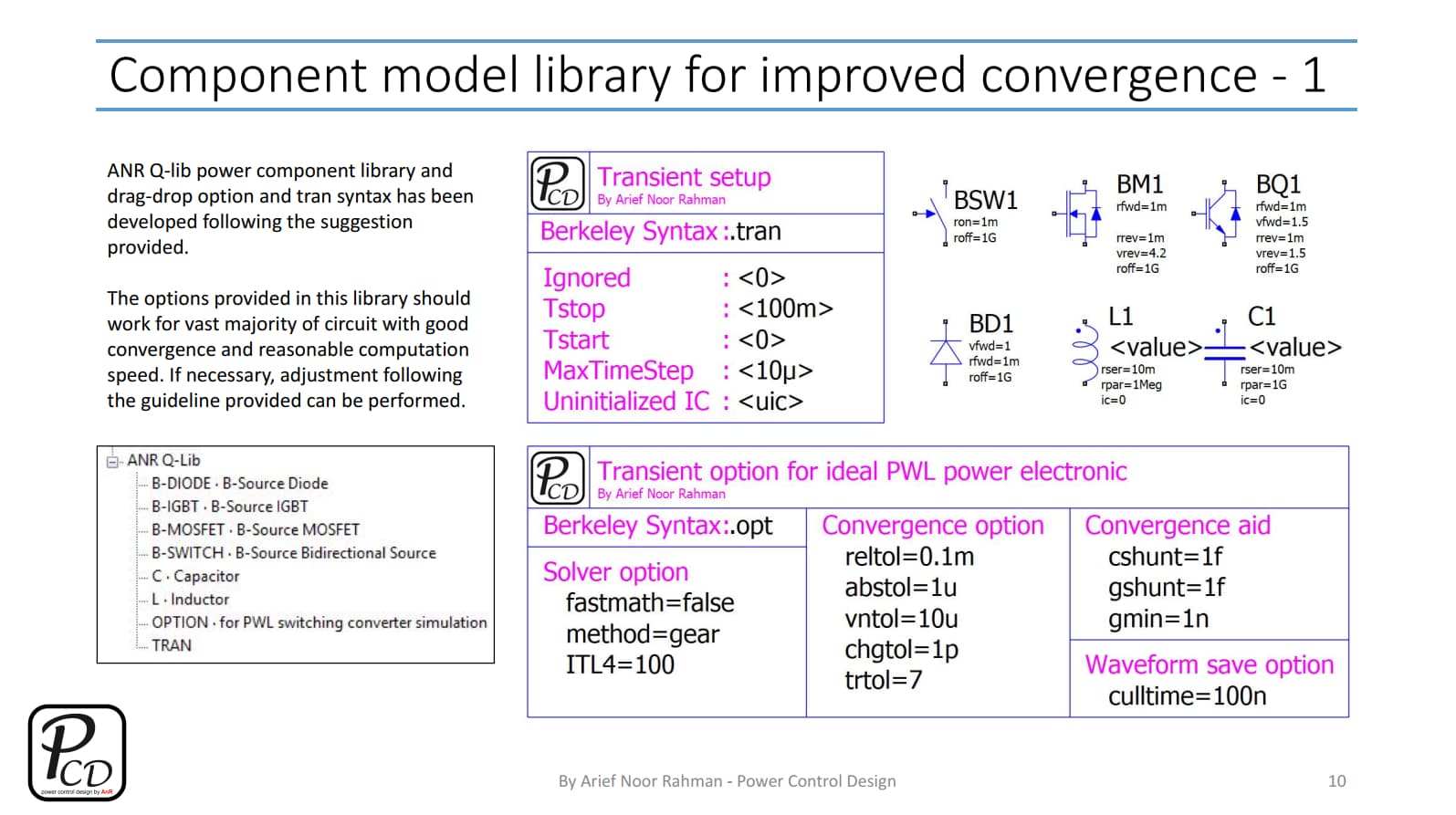 The goal is, to improve convergence (avoid that pesky Timestep too small) by means of simulation options and component model definition.