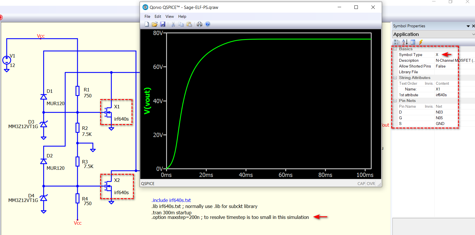 Thank you so much with your help with this. I wasn’t sure whether it was the mosfet model or something to do with the .tran simulation statement timing. Again, I am finding that moving from LTspice to this version is not all that intuitive and I should have known that my subckt should have been X instead of M which is the same case on LTspice. After running the same simulation on both LTspice and Qspice I am getting very different resonant frequencies and waveforms between the LTspice and Qspice simulations actually the LTspice simulation is much closer to the real world results I get on the actual hardware. This maxilli circuit should be resonant ~75KHz on Qspice it is resonant at ~22 KHz?? Another thing I cannot figure out is how do change an inductor resistance value? is it through a statement? as there is no longer a dialog box to change these parameters.