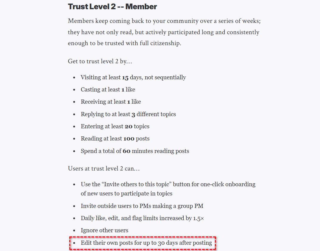 I am not sure if this is related to forum trust levels. I appear here quite frequently, and my current trust level is ‘Regular.’ Trust level can affect what you can do in this forum.