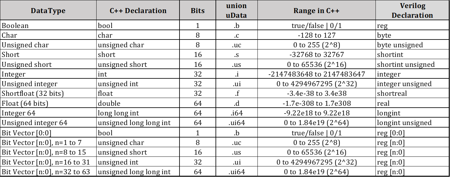 Data type defined in C++ have equivalent data type in Verilog. Now, it actually no different for Ø-Device interact in circuit simulation with language written by C++ or Verilog.