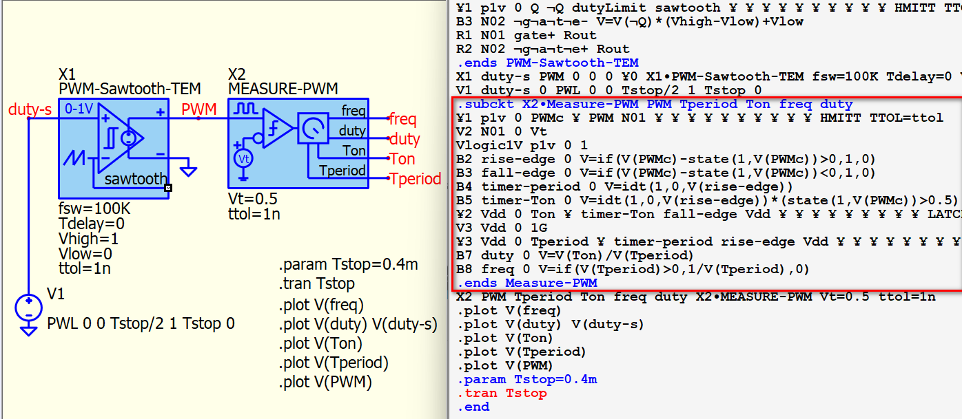 I’m creating a converter circuit in Qspice and would like to obtain the duty ratio (Duty) from the waveform.