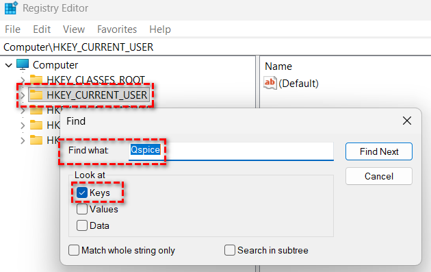 In Registry Editor, Find Qspice in HKEY_CURRENT_USER and will bring you to its registry.