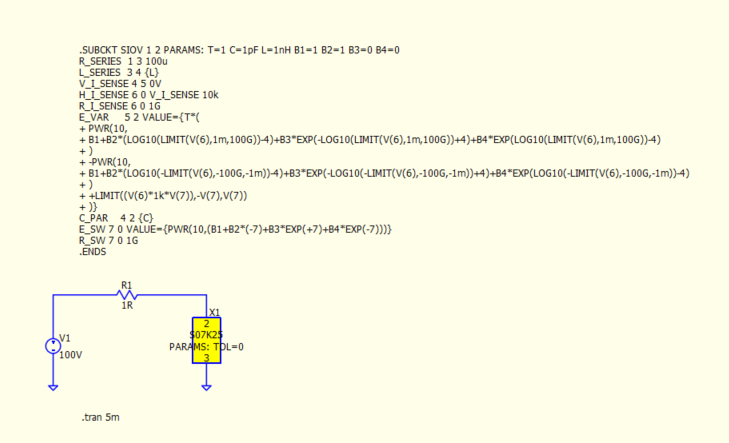 I copy & paste that into QSPICE, it asks me which Subcircuit, I chose S07K25, click include entire file. When I simulate I get “Fatal error: No such subcircuit: SIOV”.