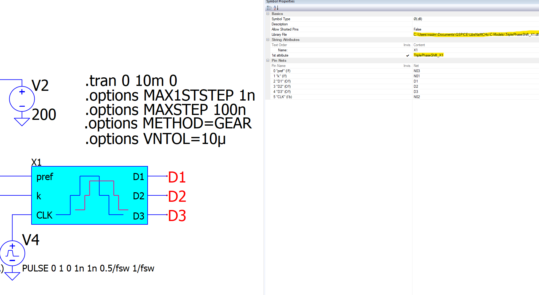 The message suggests that the DLL is found but does not contain the evaluation function. For your DLL, the eval function must be named “triplephaseshift_x1()” (all lower case).