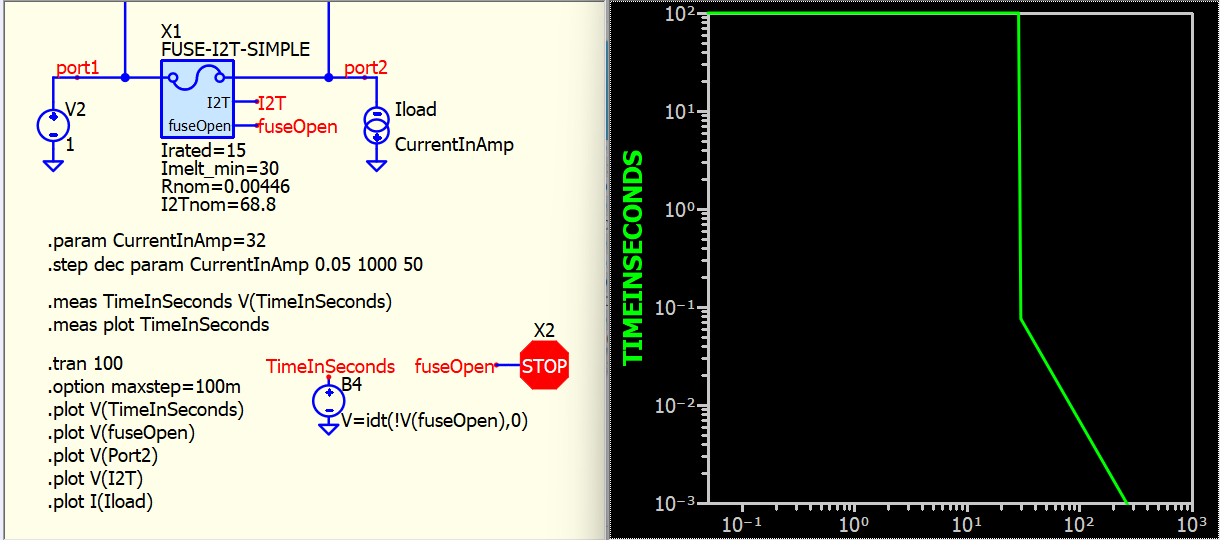 I have a circuit that needs a fuse and some transient protection devices. I want to model various actions around blowing the fuse. I want to model the I^2*t performance because I learned about it the hard way.