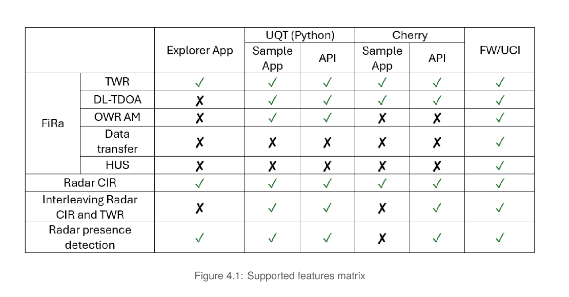 FiRa 3.0 Ranging, 360° Angle of Arrival, UWB Radar + presence detection, concurrent operation support.