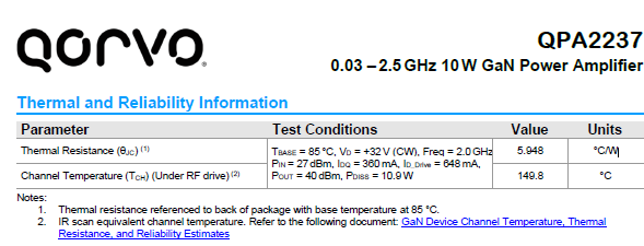 I will be using QPA2237 on a board, and will need to cool the component from the bottom of the device as well as the top of the device. The datasheet gives thetaJC,bottom information. Is thetaJC,top information available as well?