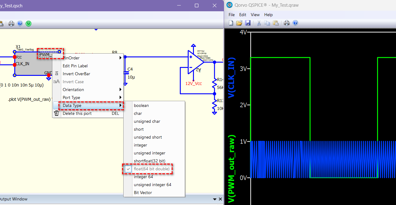 Change Data Type to “float(64 bit double)”, re-create C++ template. This change don’t need to re-create Verilog Template. Just Re-create C++ .DLL Main Template > Re-compile Verilog file, and you should have output in floating point.