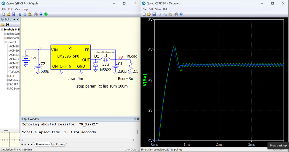 For this week’s QSPICE schematic capture, we have “5V” by our friend Alexander Bordodynov. “It is necessary to select the capacitors at the output of voltage converters correctly.” (Schematic Capture Post #056) Please send any submissions to tim.mccune@qorvo.com.