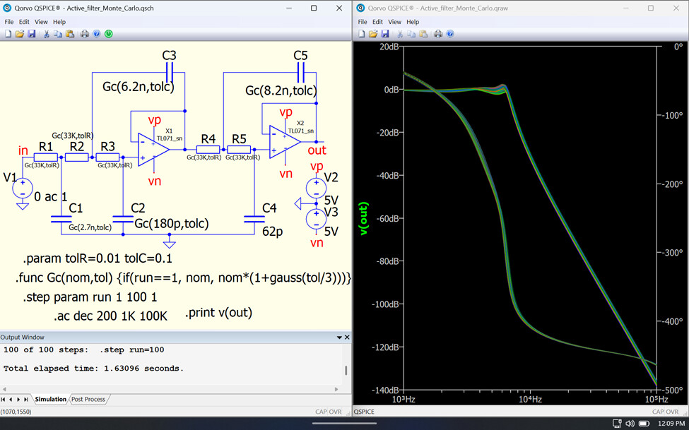 For this week’s QSPICE schematic capture, we have “Active Filter Monte Carlo” by our friend and frequent circuit simulation contributor Alexander Bordodynov. “I performed the analysis with a more accurate and therefore more complex operational amplifier model.” Please send any submissions to tim.mccune@qorvo.com (Schematic Capture Post #070)
