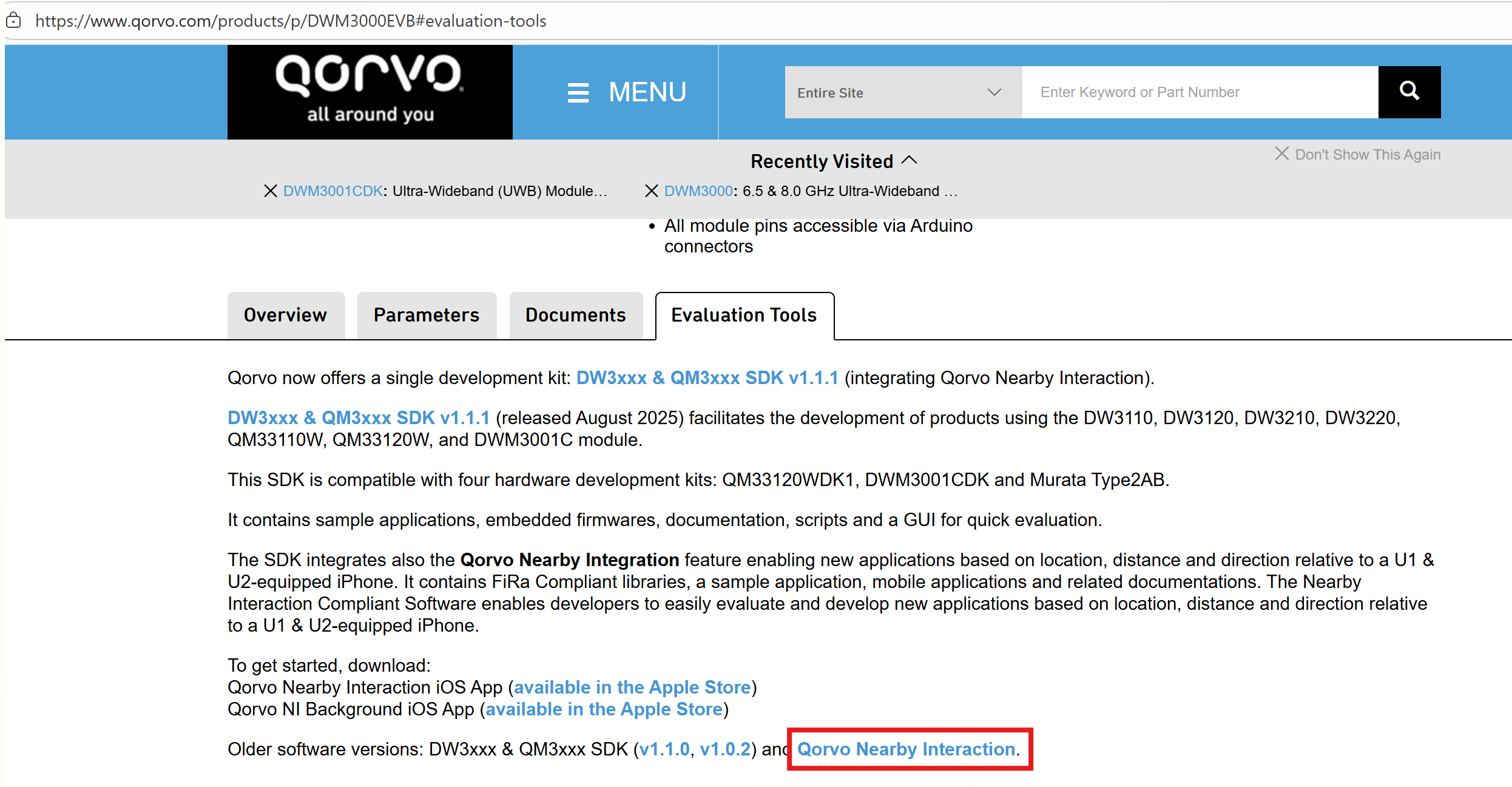 Hi. I download Qorvo Nearby Interaction as below to test.