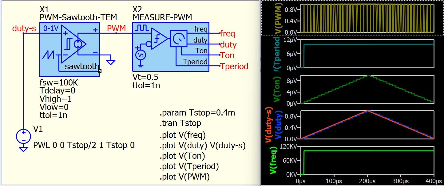 Is there any (simple) way to have the runtime frequency measurement of a signal, pulse-by-pulse? I need something in the schematic diagram which is able to detect the frequency of an input signal, outputting the value of the frequency for every single signal cycle. This is needed to track the frequency of a switching power supply, and to plot it into the waveform viewer, together with other signals. This is a very useful function for power supply investigation, and for instance it is available in my oscilloscope.