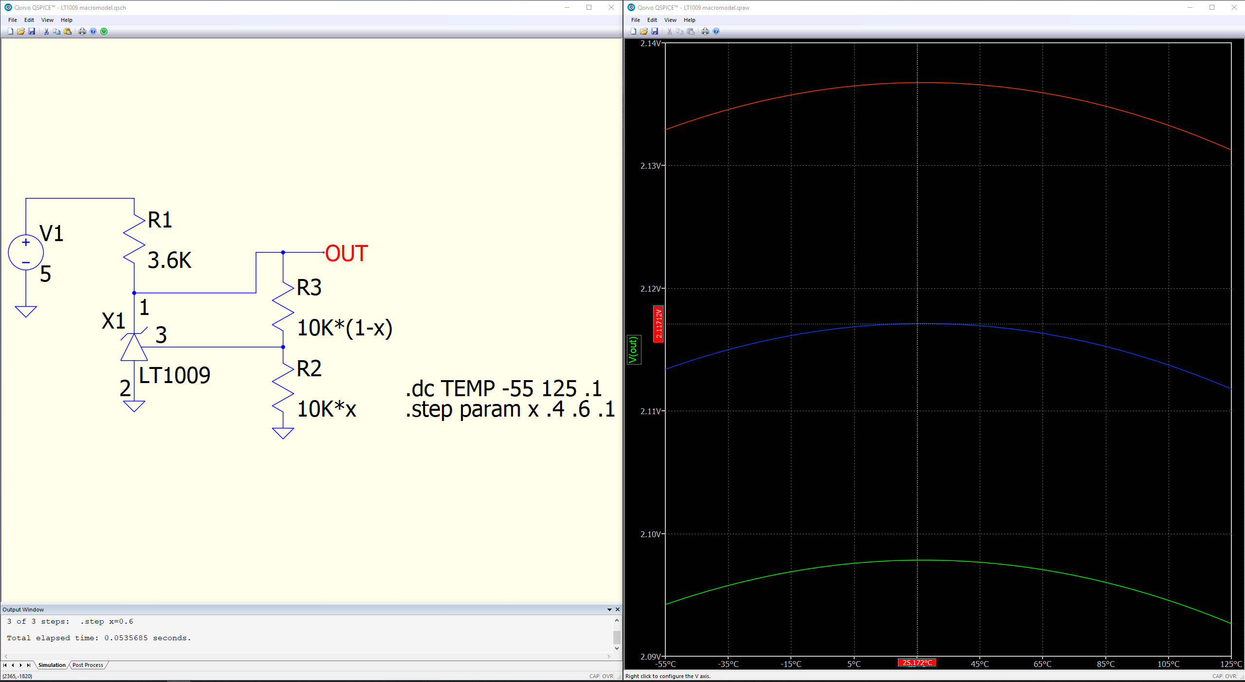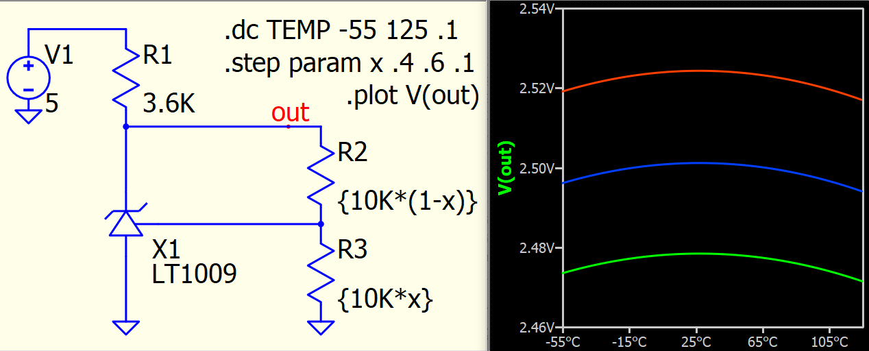 The problem is, that with same schematic expected result is not identical; LTSpice returns 2.50V@25°C when QSpice gives 2.12V@25°C.