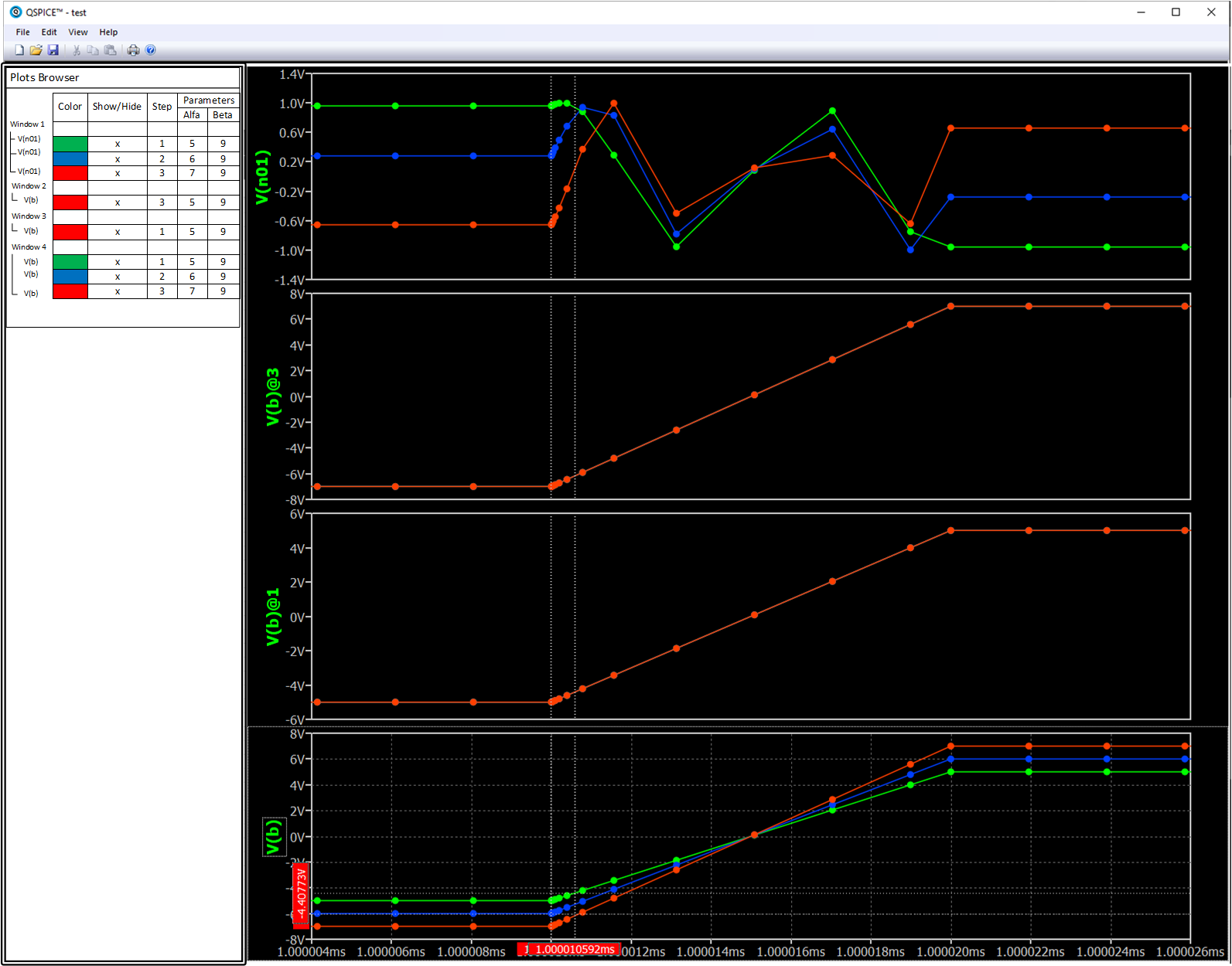 About the “step” information in the status bar: yes, easy to see the step number, but actually you don’t know the parameter values. Especially in multiple nested stepped simulations, you just see the progressive step number, but you don’t know what is referring to. It would be nice to have it showed in the status bar.