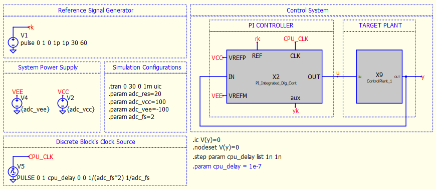 while evaluating the code for my PI Digital controller, I think i’ve stumbled into some issues regarding (what I think is)stepping parameters. As can be seen in the attached figure, my current design is made of a Laplace plant and a digital controller, which used the CPU_CLK falling edge to execute some code ( a simple PI controller in this case). The issue is that although i’ve clearly selected two identical “delays” between the CPU clock and the reference pulse (placed in t=0), my system responses are not equal.
