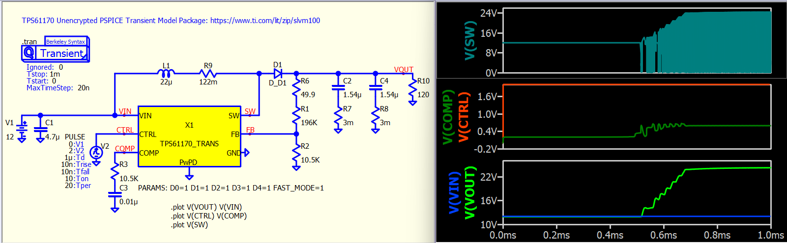 I download TPS61170 https://www.ti.com/lit/zip/slvm100 and tested, but again, problem cannot be replicated. Update Qspice and retry. If you find a consistent way the problem can be replicate, share it in this post or email to Mike.