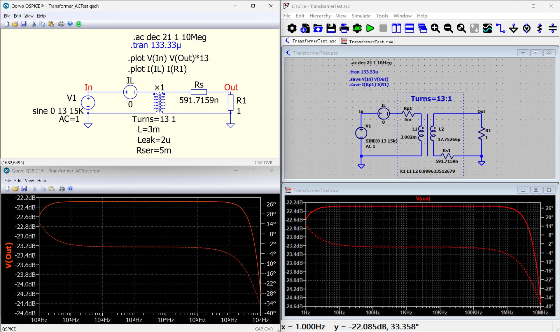 Additionally, I tested the transformer in both QSpice and LTspice, and the results were the same, it’s waveform image see below also.