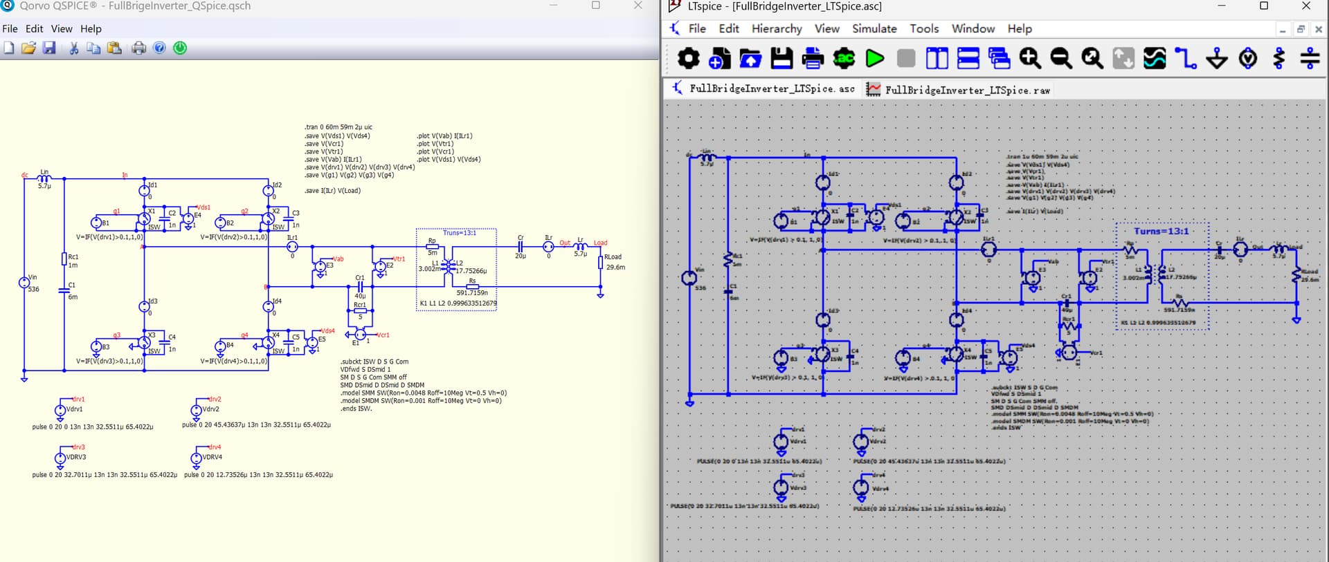 If anyone wants to compare SPICE simulations, they have to be very familiar with the differences in SPICE programs. Qspice and LTspice have different timestep schemes, default parasitic settings for inductors (Qspice with Rpar=INDUCTANCE÷(15.91×GMIN) and LTspice with Rser=1mohms), and different Rser/Rpar arrangements for capacitors, etc… There are devices within SPICE that can behave differently, so it’s advisable not to delve too deeply into comparisons.
