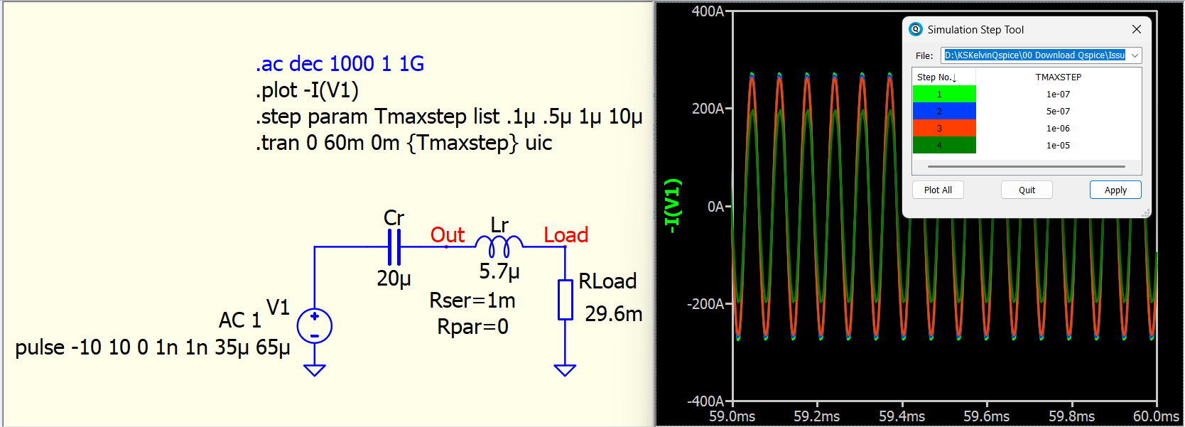 If you commonly work with high Q networks, be cautious about the maxstep, regardless of which spice platform you are using.