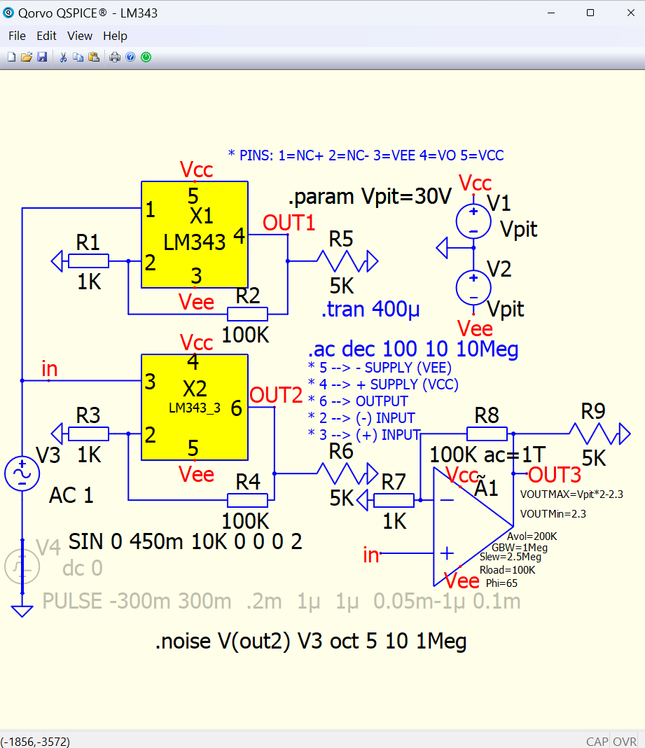 In addition, the A-device may have EN=…freq…, which is not accepted in Qspice. It appears that noise analysis in LTspice considers the simulation frequency for its EN value. This is why I don’t think an equivalent model for noise analysis can currently be created.